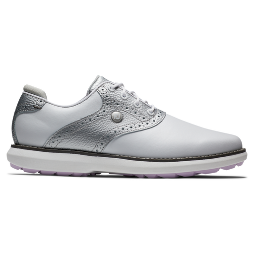 FootJoy Ladies Traditions Spikeless Golf Shoes Colour - White/Silver/Purple Clean, Iconic Silhouette FJ Traditions offer complete tracti...